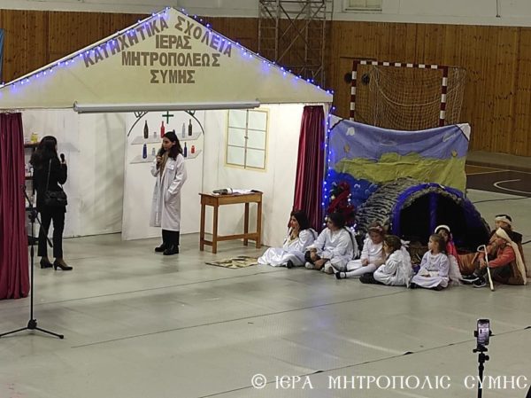 Με μεγάλη επιτυχία πραγματοποιήθηκε η Χριστουγεννιάτικη εορτή των Κατηχητικών Σχολείων της Σύμης, στο Κλειστό Γυμναστήριο «ΙΩΑΝΝΗΣ ΚΑΠΝΟΥΛΑΣ» την Τρίτη 27 Δεκεμβρίου 2022.
