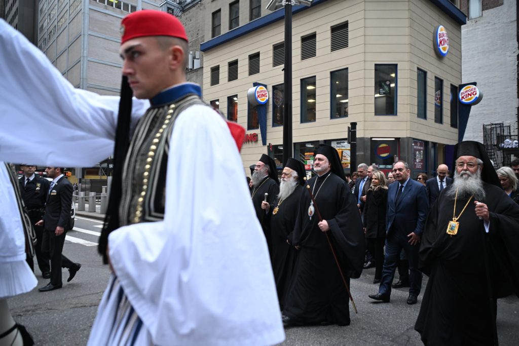 Στο πλαίσιο των εκδηλώσεων για την 203η Επέτειο της Εθνικής Παλιγγενεσίας, το πρωί οι ομογενείς παρακολούθησαν με ευλάβεια και κατάνυξη την Δοξολογία προεξάρχοντος του Σεβασμιωτάτου Αρχιεπισκόπου Αμερικής κ. Ελπιδοφόρου και καμάρωσαν τους Εύζωνες της Προεδρικής Φρουράς, οι οποίοι είχαν παραταχτεί στον σολέα του ιστορικού ναού του Αγίου Νικολάου.