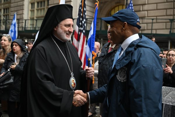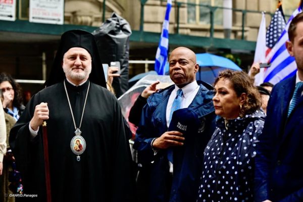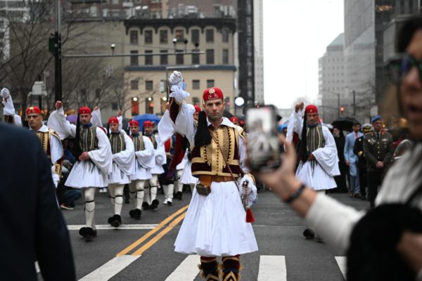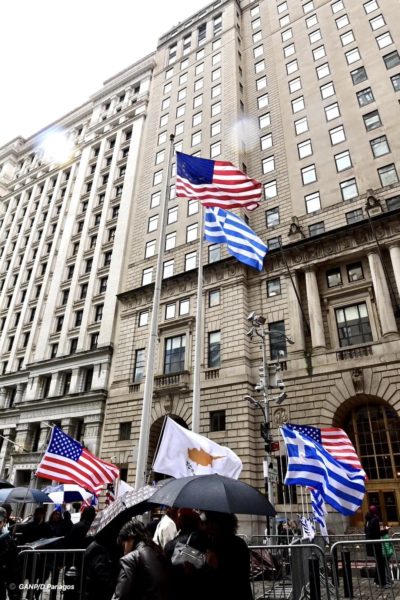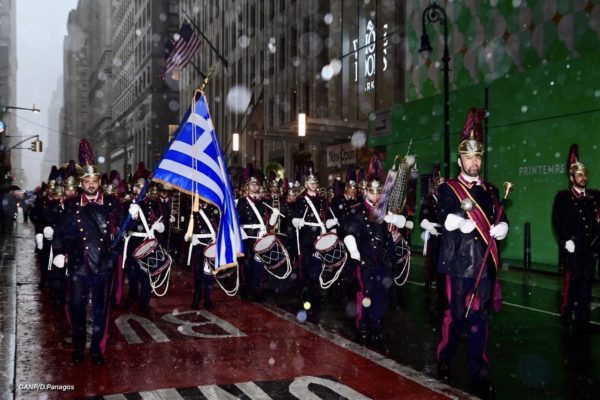 Η νεροποντή που έπληξε το Νότιο Μανχάταν το μεσημέρι της Παρασκευής, 12ης Απριλίου 2024, την ώρα που ξεκινούσε η παρέλαση από τον ιστορικό Εθνικό Ιερό Προσκυνηματικό Ναού του Αγίου Νικολάου στο Σημείο Μηδέν της Νέας Υόρκης προς το Μπόουλινγκ Γκριν δεν πτόησε ούτε τους μαθητές του Ελληνικού Απογευματινού Σχολείου Πλάτων του Μπρούκλιν που υποδύθηκαν τους σημαιοφόρους, ούτε το Άγημα των Ευζώνων της Προεδρικής Φρουράς, ούτε την Παλαιά Φιλαρμονική της Κέρκυρας και ούτε τους ομογενείς.