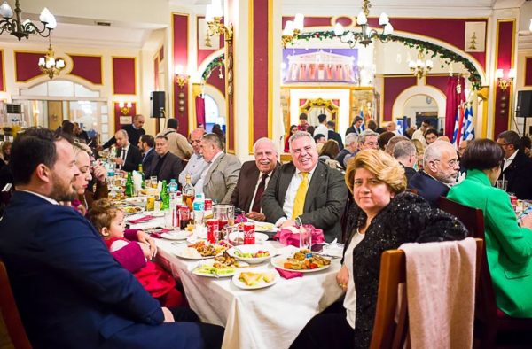 Ακολούθησε πλούσιο γεύμα, με όλους μας να απολαμβάνουμε τις πεντανόστημες γαστριμαργικές επιλογές του Ελληνικού Κέντρου. Λίγη ώρα μετά, το κέφι άναψε με την κα Όλγα Καλατζή να δίνει πρώτη τον χορευτικό τόνο της βραδιάς. Για πολλές ώρες η πίστα δεν άδειασε, με τους χορευτές να εναλλάσσονται πότε χορεύοντας βαριά ζεϊμπέκικα και πότε ανάλαφρους συρτούς χορούς και τσιφτετέλια που τραβούσαν τα βλέμματα όλων μας στην πίστα. Η ζεστή φωνή της κας Μόνικας Μαλκουτζή συνοδευόμενη από τους μουσικούς : Νίκο Μποφίλιο, Γιώργο Αναστασόπουλο, Γιάννη Τόλια και Τάσο Ζάντζα, δυναμίτισαν την βραδιά με τα υπέροχα τραγούδια τους και πραγματικά μας χάρισαν μια μοναδική και αξέχαστη μουσική εμπειρία. Από το γλέντι δεν έλειψαν και τα πιάτα που έσπαζαν με προεξάρχοντα τον Ταμία κο Αντώνη Ιορδανίδη να χορεύει και γύρω του να μην ξεχωρίζει το χρώμα του δάπεδού από τα σπασμένα πιάτα.