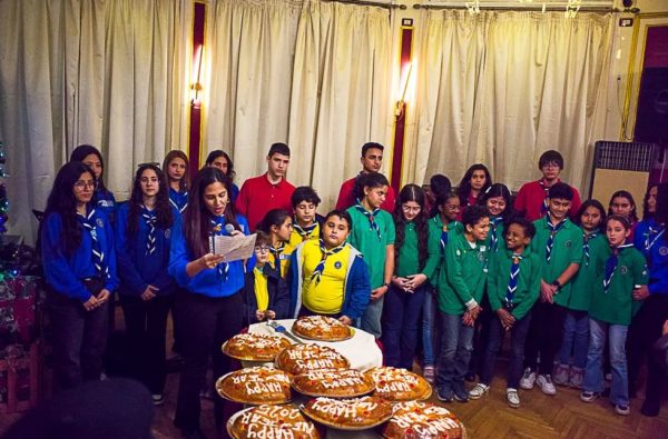 Ο κ. Καβαλής έδωσε στην συνέχεια το βήμα στο 1ο Σύστημα των Ελλήνων Προσκόπων του Καΐρου. Ένα χαρούμενο σμάρι παιδικής και εφηβικής ενέργειας γέμισε μονομιάς με τα χρώματα και την ζωντάνια του τον χώρο. Οι Πρόσκοποι μαζί με τους βαθμοφόρους του Συστήματος πήραν την θέση τους μπροστά από τις πίττες, με τα Λυκοπουλάκια να μην σταματάνε τα πειράγματα και τα αστεία μεταξύ τους. Η Υπαρχηγός Συστήματος κα Ναταλί Σαΐντ απεύθυνε τον χαιρετισμό και τις ευχές για την νέα χρονιά εκ μέρους του Αρχηγού κ. Χρήστου Αντωνίου αναφέροντας « Κάθε καινούργια χρονιά είναι και μια καινούργια υπόσχεση. Ο Ελληνικός Προσκοπισμός του Καΐρου γιορτάζει κατά την παρούσα περίοδο 2024-2025 τα 112 χρόνια δράσης και προσφοράς, γι’ αυτό έχουμε ένα λόγο παραπάνω να κάνουμε νέα σχέδια, να προσπαθήσουμε όλοι μαζί να φέρουμε κοντά μας τα παιδιά και τους νέους της Παροικίας μας και να δραστηριοποιηθούμε με ζήλο σε κοινούς αγώνες για ένα καλύτερο αύριο στο οποίο όλοι μας ελπίζουμε.
