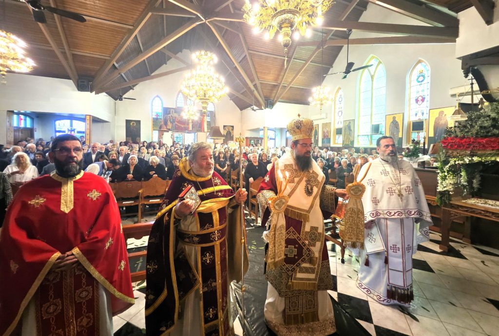 Των Ιερών Ακολουθιών προέστη ο Θεοφιλέστατος Επίσκοπος Χώρας κ. Ευμένιος, εκπροσωπώντας τον Σεβασμιώτατο Αρχιεπίσκοπο Αυστραλίας κ. Μακάριο, του οποίου τις πατρικές ευχές και ευλογίες μετέφερε στο εκκλησίασμα.