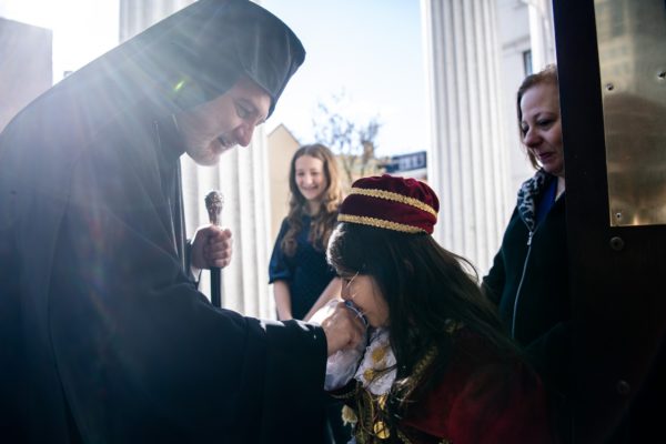 Στον χαιρετισμό του, ο πρέσβης των ΗΠΑ στην Αθήνα, Γιώργος Τσούνης, χρησιμοποίησε επανειλημμένως και με θέρμη την ελληνική γλώσσα, καλώντας, αρχικά, άπαντες, να μην ξεχάσουν ποτέ τις ελληνικές ρίζες τους.