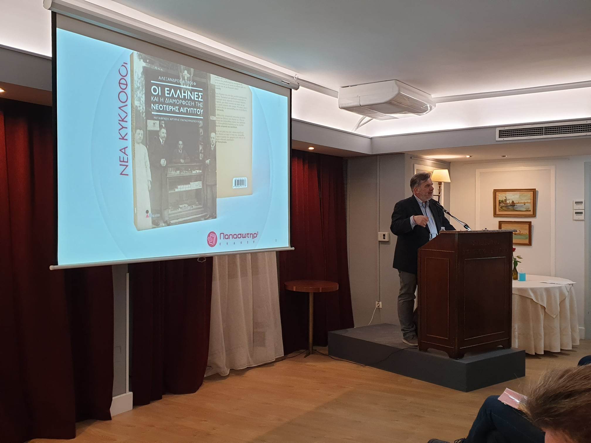 O Aλέξανδρος Κιτροέφ, παρουσίασε το βιβλίο του οι “Έλληνες και η Διαμόρφωση της Σύγχρονης Αιγύπτου” στο Σύνδεσμο Αιγυπτιωτών Ελλήνων στο κέντρο της Αθήνας την Τετάρτη 15 Μαρτίου 2023. Την εκδήλωση διοργάνωσαν ο Σύλλογος Αμπετείου Σχολής και η Ένωση Αποφοίτων Αβερωφείου Σχολής Αλεξανδρείας. Φωτό: ope.gr