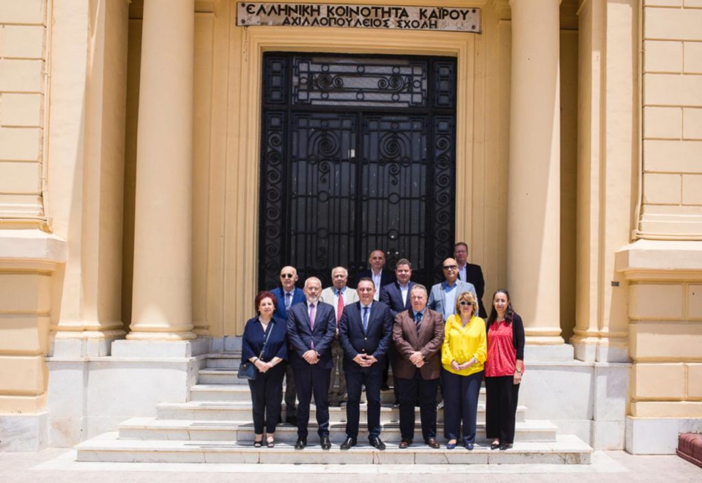 Ο Υφυπουργός Παιδείας, Θρησκευμάτων & Αθλητισμού, κ. Κωνσταντίνος Βλάσης, επισκέφθηκε, 14 Μαΐου, τα Ελληνικά Σχολεία του Καΐρου στην Ηλιούπολη (Αχιλλοπούλειο Σχολή και Αμπέτειο Σχολή), όπου συνομίλησε με εκπαιδευτικούς και μαθητές.