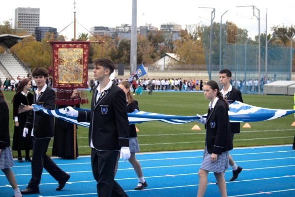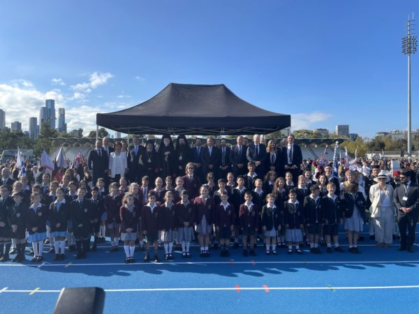 Ανάμεσά τους, οι μαθητές και μαθήτριες του Κολλεγίου του Αγίου Ιωάννη και του σχολείου Oakleigh Grammar, οι οποίοι σκόρπισαν συγκίνηση ψάλλοντας το «Τη Υπερμάχω Στρατηγώ» και τους Εθνικούς Ύμνους της Ελλάδος και της Αυστραλίας.