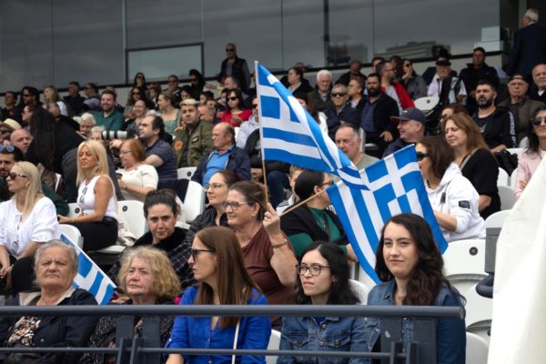 Χιλιάδες θεατές καμάρωσαν τις νεότερες γενιές των Ελληνόπουλων να παρελαύνουν περήφανα, με ελληνικές σημαίες και με παραδοσιακές ελληνικές ενδυμασίες.
