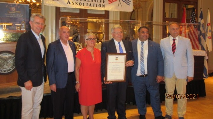 Το απόγευμα της Κυριακής άρχισαν στην Αθήνα οι εργασίες του 99ου Παγκόσμιου Συνεδρίου της AHEPA, το οποίο θα συνεχιστεί μέχρι τις 30 Ιουλίου με μια σειρά εκδηλώσεων. Κατά την έναρξη του Συνεδρίου, η κεντρική διοίκηση της AHEPA από τις ΗΠΑ απένειμε στον γενικό γραμματέα Απόδημου Ελληνισμού και Δημόσιας Διπλωματίας του υπουργείου Εξωτερικών, Γιάννη Χρυσουλάκη, το βραβείο «2021 AHEPA Public Service Award» για την κοινωνική του προσφορά και την προσφορά του στην ομογένεια.