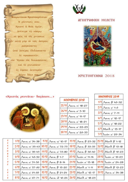 Ένας οδηγός αγιογραφικής μελέτης για την περίοδο των Χριστουγέννων ευρίσκεται δημοσιευμένος στον ορθόδοξο διαδικτυακό τόπο των “Χαρούμενων Αγωνιστών” του μαθητικού Τομέα του Συλλόγου “Μέγας Βασίλειος” (agonistes.gr), οπότε, οι “Χαρούμενοι Αγωνιστές” σας καλούν να συνεχίσετε να μελετάτε μέχρι τις 7/1 τα ιερά κείμενα της Καινής Διαθήκης για τη Γέννηση και τη Βάπτιση του Χριστού.