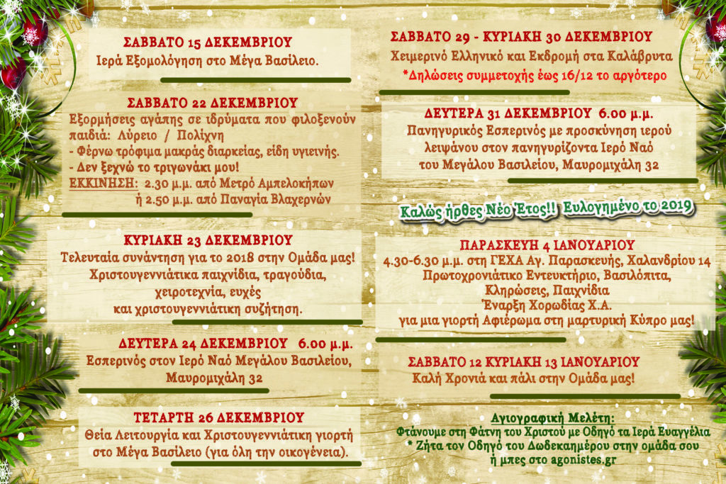 Οι Χαρούμενες Αγωνίστριες Αθηνών (agonistes.gr), μάς προσκαλούν και αυτό το Δωδεκαήμερο σε εκδηλώσεις, δράσεις και εκκλησιασμούς και μάς εύχονται Χριστούγεννα με το Χριστό!!
