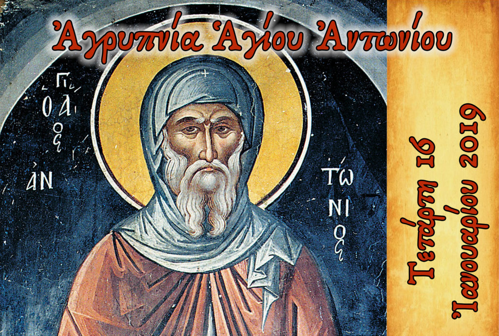 Ο ορθόδοξος διαδικτυακός τόπος της Χριστιανικής Φοιτητικής Δράσης, μάς ενημερώνει περί της ερχομένης Βραδινής Θείας Λειτουργίας στο παρεκκλήσι του Οικοτροφείου, στη μνήμη του Μεγάλου Αντωνίου, κατά την Τετάρτη 16 Ιανουαρίου 2019 στις 10 μ.μ.