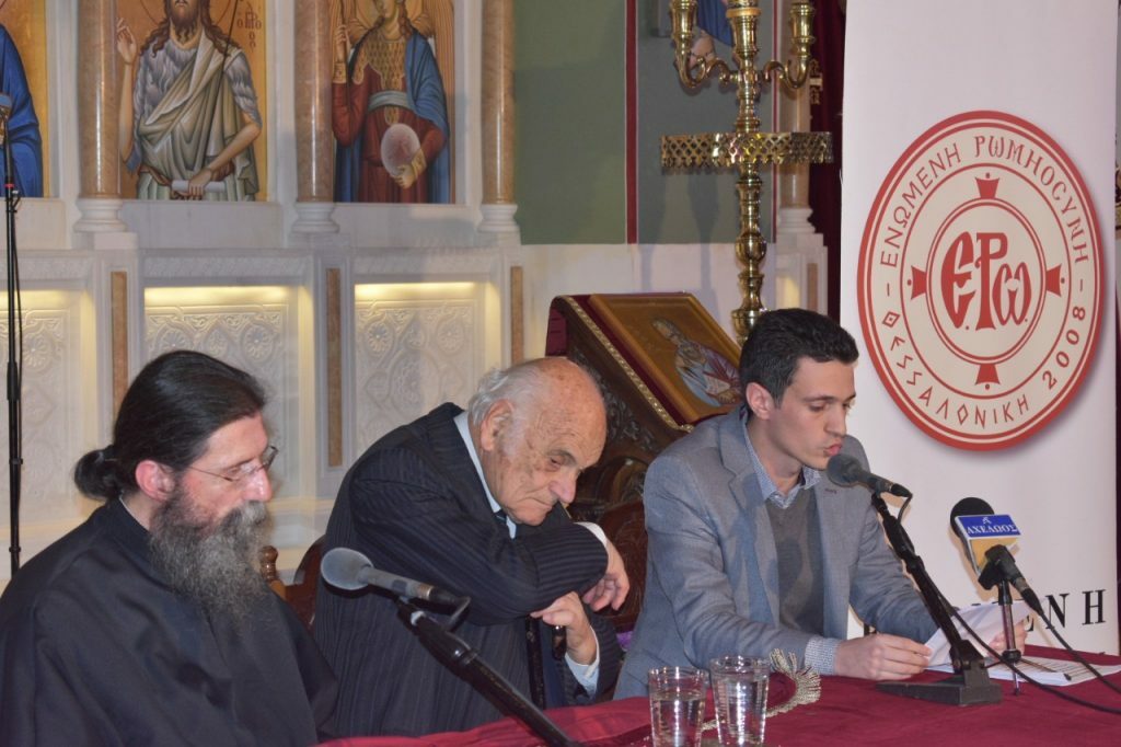 Ἀμέσως μετὰ τὸν λόγο ἔλαβε τὸ μέλος τῆς Ἑνωμένης Ρωμηοσύνης κος Νικόδημος Καλλιντέρης, ὁ ὁποῖος μίλησε γιὰ τὴν νεότητα τῆς ἘΡΩ. Οἱ νέοι τοῦ συλλόγου δραστηριοποιοῦνται σὲ δεκάδες πόλεις τῆς Ἑλλάδας, ἔχουν συμμετάσχει σὲ προσκυνήματα στὸ ἐξωτερικό, ἐνῶ βοηθοῦν γενικῶς καὶ στοὺς ὑπολοίπους τομεῖς δράσεως τοῦ συλλόγου μας. Ἡ Ἑνωμένη Ρωμηοσύνη βοηθάει τοὺς νέους μὲ ἐκδηλώσεις σὰν τὴν σημερινή, ἀλλὰ καὶ μὲ ποικίλες ἐκδόσεις βιβλίων νὰ δημιουργήσουν κατὰ Θεὸν οἰκογένειες.