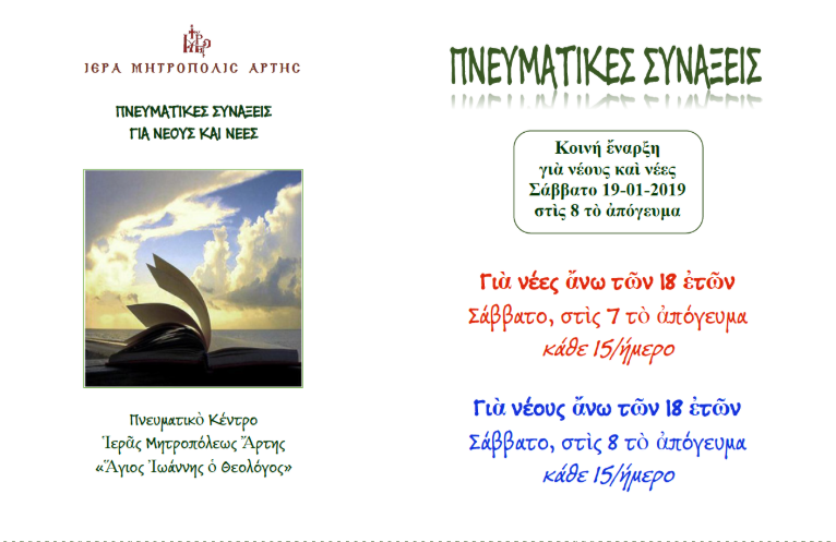 Πνευματικές Συνάξεις για νέους και νέες στην Άρτα
