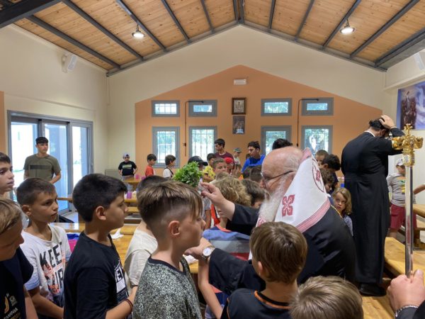 Μαζί με τον Σεβασμιώατο, μετέβησαν και οι φιλοξενούμενοι Μητροπολίτες Ναζαρέτ κ. Κυριακός και Λέρου και Καλύμνου κ. Παΐσιος οι οποίοι ομίλησαν στους κατασκηνωτές με λόγια πατρικά και αγάπης.