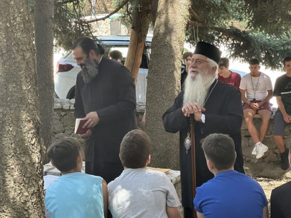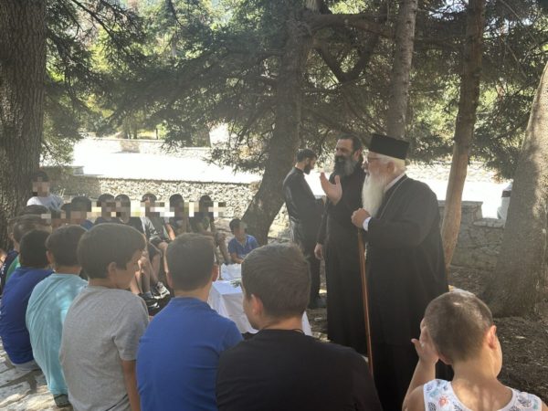 Κοντά στα παιδιά από την πρώτη μέρα βρίσκεται ο Σεβασμιώτατος Μητροπολίτης Θηβών, Λεβαδείας και Αυλίδος κ. Γεώργιος, ο οποίος το μεσημέρι τέλεσε τον Αγιασμό της Πρώτης Κατασκηνωτικής περιόδου. Ο Σεβασμιώτατος καλωσόρισε τα παιδιά και τους ανέφερε ότι στην Κατασκήνωση θα έχουν την ευκαιρία να γνωρίσουν νέους φίλους, θα μάθουν να ζουν μαζί με άλλα παιδιά, θα ζήσουν κοντά στη φύση και θα γνωρίσουν τη ζωή της Εκκλησίας και τους ευχήθηκε να έχουν καλή διαμονή.