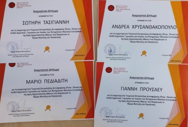 Το Σάββατο 2 Απριλίου πραγματοποιήθηκε στον Ι.Ν. Αγ. Ιωάννου Κυνηγού (οδού Βουλιαγμένης) το τουρνουά πινγκ πονγκ του Ιδρύματος Νεότητος και Οικογένειας της Ιεράς Αρχιεπισκοπής Αθηνών, με τη συμμετοχή παιδιών Δημοτικού, Γυμνασίου και Λυκείου από ενορίες της Αρχιεπισκοπής.