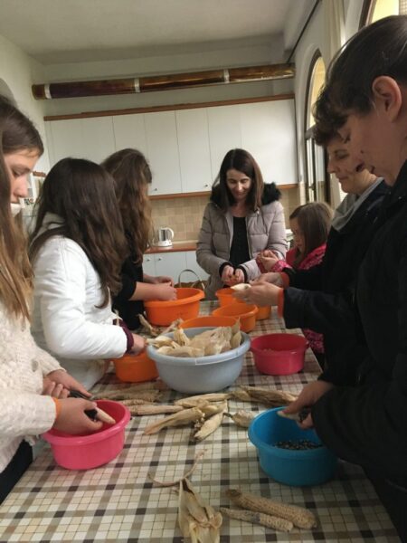 Τον όμιλο των μικρών προσκυνητών, τους Ιερείς και τους Κατηχητές που τους συνόδευαν, υποδέχθηκαν η Καθηγουμένη Αδελφή Θεοδέκτη και η Αδελφότητα της Ιεράς Μονής. Μετά το πρωινό κέρασμα που προσφέρθηκε στο αρχονταρίκι της Ιεράς Μονής, οι νέοι και οι νέες μας συμμετείχαν σε πρωτότυπες δημιουργικές δράσεις όπως η μελισσοκομία και τυροκομία.