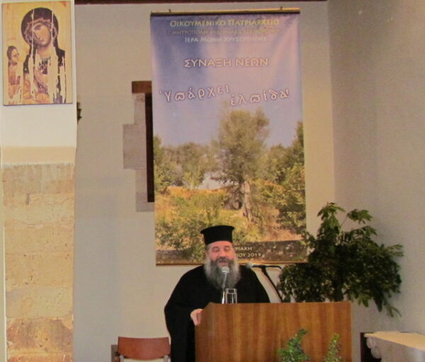 Στον συνεδριακό χώρο της Αγίας Κυριακής ο Σεβ. Αρχιεπίσκοπος Κρήτης κ. Ειρηναίος, ο Σεβ. Ποιμενάρχης κ. Δαμασκηνός και οι δύο Θεοφιλέστατοι Επίσκοποι, Ευμενείας κ. Ειρηναίος και Δορυλαίου κ. Δαμασκηνός, χαιρέτισαν την πνευματικοφόρα αυτή εκδήλωση που διοργανώνεται χρόνια τώρα υπό τον συντονισμό της Καθηγουμένης της Μονής Γερόντισσας Θεοξένης και της Αδελφότητος και απηύθυναν εγκάρδιο καλωσόρισμα στον ομιλητή και στους συμμετέχοντες νέους.