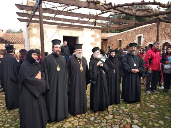 Νωρίς το πρωί, τελέστηκε Πολυαρχιερατικό Συλλείτουργο, ιερουργούντος του Σεβασμιωτάτου Ποιμενάρχου Κυδωνίας και Αποκορώνου κ. Δαμασκηνού, Συλλειτουργούντων του Θεοφιλεστάτου Επισκόπου Ευμενείας κ. Ειρηναίου και του Θεοφιλεστάτου Επισκόπου Δορυλαίου κ. Δαμασκηνού, συμπροσευχομένων του Σεβασμιωτάτου Αρχιεπισκόπου Κρήτης κ. Ειρηναίου, Κληρικών, της Καθηγουμένης της Μονής Γερόντισσας Θεοξένης μετά της αδελφότητος, της Καθηγουμένης της Ιεράς Μονής Κορακιών Γερόντισσας Θεοφόρας και πλήθος νέων.