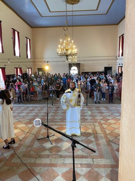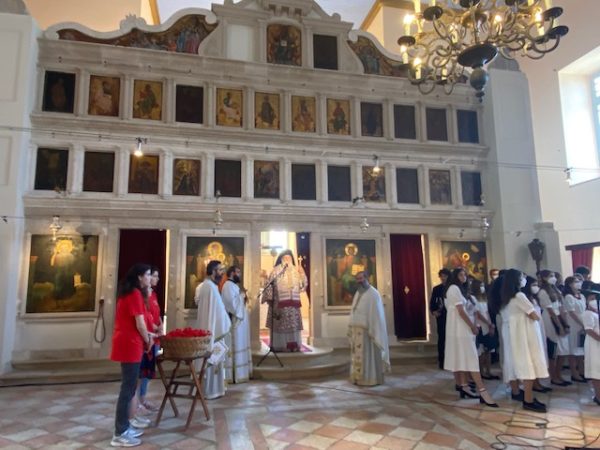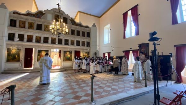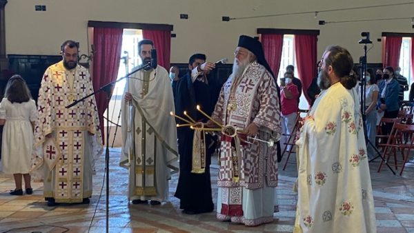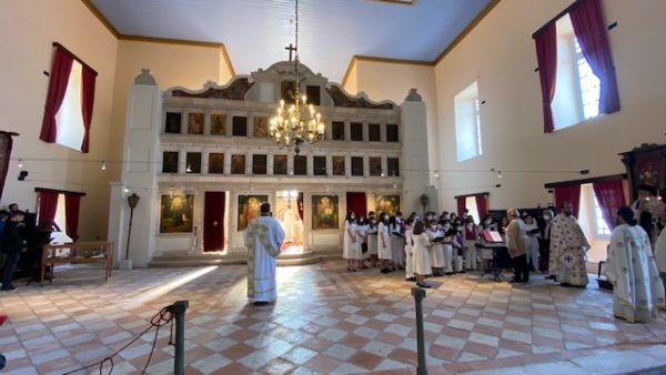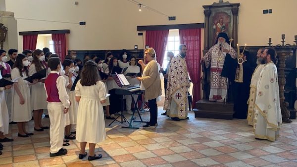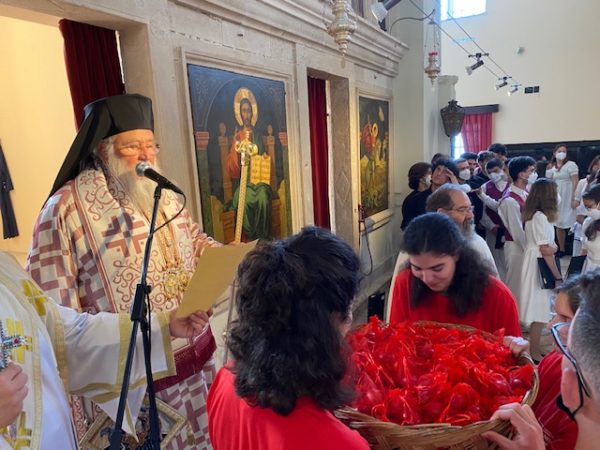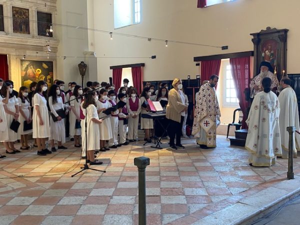 Το πρωί του Σαββάτου 14 Μαΐου 2022, στον ιστορικό Ιερό Ναό του Αγίου Γεωργίου στο Παλαιό Φρούριο της Κέρκυρας ο Σεβασμιώτατος Μητροπολίτης Κερκύρας Παξών και Διαποντίων νήσων κ. Νεκτάριος τέλεσε την θεία λειτουργία συμπαραστατούμενος από νέους ιερείς, με την συμμετοχή πλήθους νέων παιδιών των κατηχητικών συνάξεων και με την συμμετοχή των στελεχών. Κατά την αναστάσιμη θεία λειτουργία όλα τα παιδιά κρατούσαν αναμμένες λαμπάδες που η Ιερά Μητρόπολη είχε φροντίσει για την διανομή. Στην θεία λειτουργία εκτός από τους φοιτητές οι οποίοι πλαισίωναν το ιερό αναλόγιο, τους λειτουργικούς ύμνους έψαλλε η παιδική χορωδία της Κέρκυρας, υπό την διεύθυνση της κ. Καλλιαρίδου Χριστίνας.