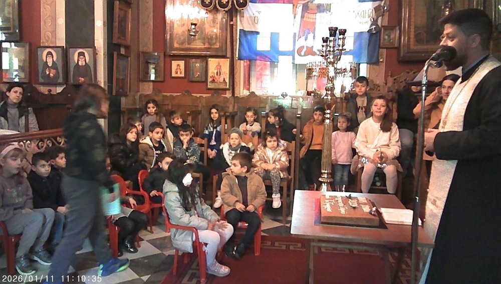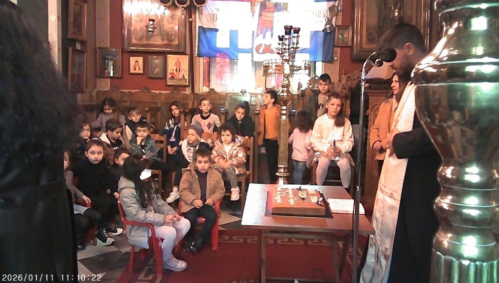 Τα παιδιά και των τριών τμημάτων της Κατηχητικής Ομάδας της Ενορίας του Ιερού Ναού Ταξιαρχών Ερμουπόλεως, την παραμονή των Θεοφανείων έψαλαν τα παραδοσιακά κάλαντα των Φώτων στις γειτονιές της Ενορίας και την Κυριακή, μετά τα Φώτα, 11 Ιανουαρίου, ο Εφημέριος του Ναού, Πρωτοπρ. Νικ. Χαρούλης, ευλόγησε την πίτα του Αγίου Βασιλείου, με την παρουσία πολλών παιδιών και γονέων, προς τους οποίους μετέφερε και τις ευχές και ευλογίες του Σεβασμιωτάτου Μητροπολίτη Σύρου κ. Δωροθέου Β’.