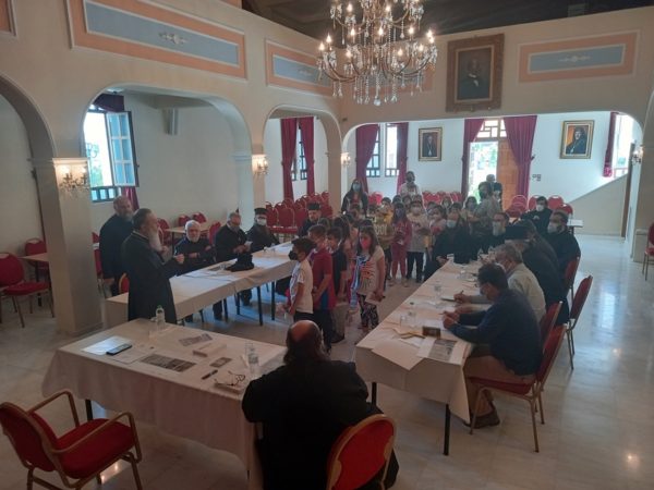 Στη συνέχεια μετέβησαν στην «Κροκίδειο Αίθουσα», δίπλα στο Επισκοπείο, όπου συνάντησαν τον Σεβασμιώτατο κ. Διονύσιο, τον Θεοφιλέστατο Πρωτοσύγκελλο της Ι. Μητροπόλεως Κορίνθου, Επίσκοπο Κεγχρεών κ. Αγάπιο ως και Ιερείς, που εκείνη την ώρα συσκέπτονταν για τα «ΙΣΤ΄ ΚΟΡΙΝΘΟΥ ΠΑΥΛΕΙΑ 2022». Ο Σεβασμιώτατος δέχτηκε με πολύ χαρά τους μικρούς Μαθητές και τους Δασκάλους τους και τους ομίλησε για τον Απ. Παύλο και την ιστορία της Τοπική Εκκλησίας.
