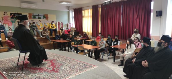 Ο Σεβασμιώτατος στη σύντομη μεν αλλά πολύ ουσιαστική επικοινωνία, που είχε με τη Διευθύντρια και τους δασκάλους, τους ευχαρίστησε για την ευγενική πρόσκλησή τους προς αυτόν και τους ευχήθηκε καλή δύναμη και υπομονή στο ευαίσθητο και απαιτητικό έργο τους.