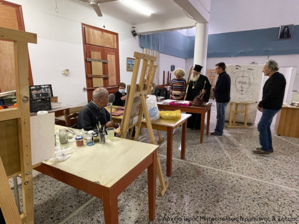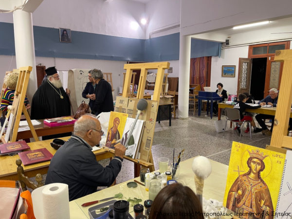Ο Μητροπολίτης Ιεραπύτνης και Σητείας κ. Κύριλλος επισκέφτηκε τη Σχολή Αγιογραφίας και Ψηφιδωτού της Ιεράς Μητρόπολης στους χώρους του παλαιού οικοτροφείου στον αύλειο χώρο της Μητρόπολης.