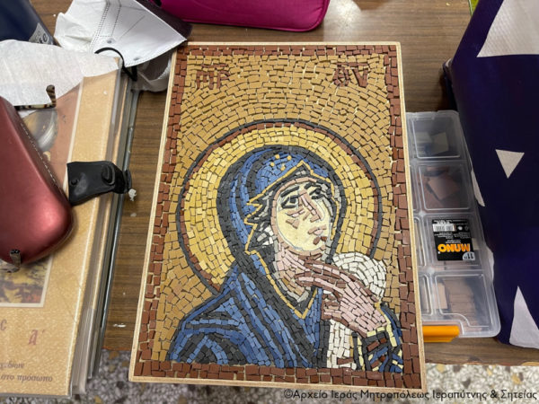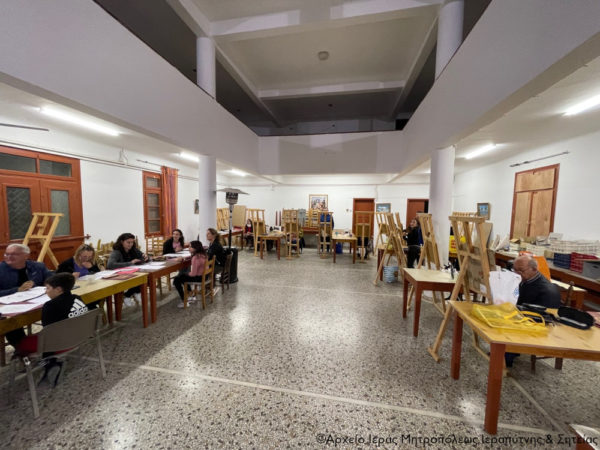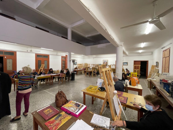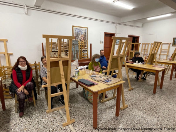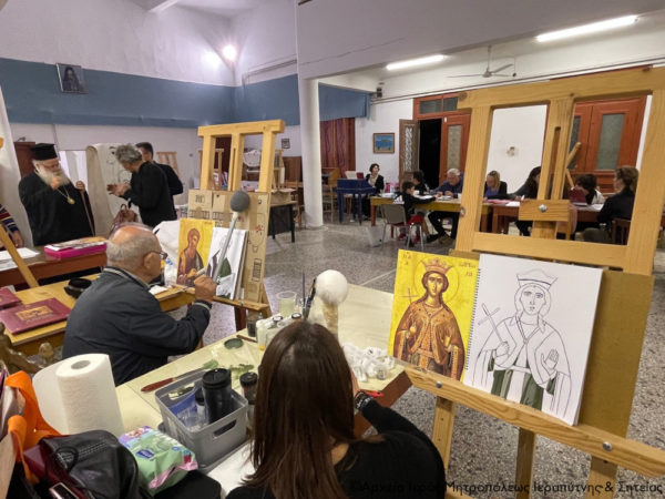 Επίσης ευχήθηκε ολόθερμα καλή δύναμη στον διδάσκοντα Αγιογράφο κ. Νικόλαο Γρινιεζάκη και καλή πρόοδο σε αρχάριους και προχωρημένους μαθητές, οι οποίοι λαμβάνοντας την απαραίτητη γνώση μπορούν να αναδειχθούν άξιοι συνεχιστές των ιερών τεχνών της Αγιογραφίας και του Ψηφιδωτού.