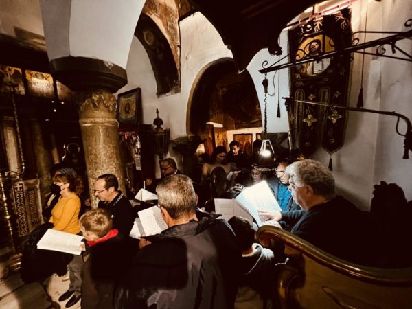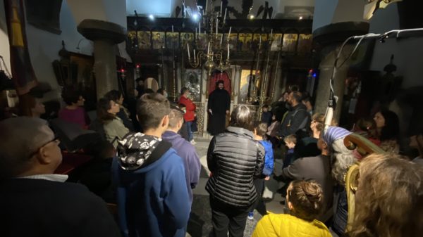 Στη συνέχεια εψάλη η Παράκληση στην Παναγία με τη συμμετοχή των πρωτοετών σπουδαστών από τη Σχολή Βυζαντινής Μουσικής Ιεράς Μητροπόλεως Θήρας.