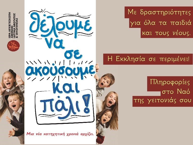 Η Εκκλησία κοντά σε παιδιά και τους νέους – Τα Κατηχητικά αρχίζουν: “Θέλουμε να σε ακούσουμε και πάλι…”