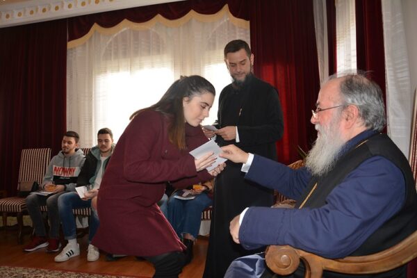 Τέλος ο Σεβασμιώτατος, πρόεδρος και ιδρυτής του Εκκλησιαστικού Ιδρύματος, επέδωσε στον κάθε φοιτητή την επιταγή της υποτροφίας, τεύχος του περιοδικού Άμβων Παγγαίου και το ημερολόγιο της Ιεράς Μητροπόλεως μας.