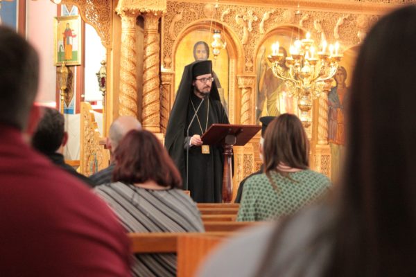 Μετά το πέρας της Ακολουθίας, ο Θεοφιλέστατος μίλησε για τον Άγιο Στέφανο και επικεντρώθηκε στο μαρτύριο και τη μαρτυρία, θέμα που διάλεξε η Κεντρική Νεολαία. Ιδιαιτέρως αναφέρθηκε στο μαρτύριο και τη μαρτυρία της Ορθοδόξου Εκκλησίας, τόσο μέσα στην ιστορία όσο και στη σημερινή εποχή, και τόνισε ότι σκοπός της Εκκλησίας, τόσο ως σώμα Χριστού όσο και ως πρόσωπα καθ’ εαυτά, είναι να δίνει τη μαρτυρία της σωτηρίας, η οποία χαρίστηκε στο ανθρώπινο γένος και σε όλη την κτίση με την ενσάρκωση, την σταύρωση και την ανάσταση του Κυρίου και Θεού και Σωτήρος ημών Ιησού Χριστού.