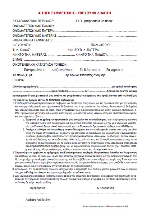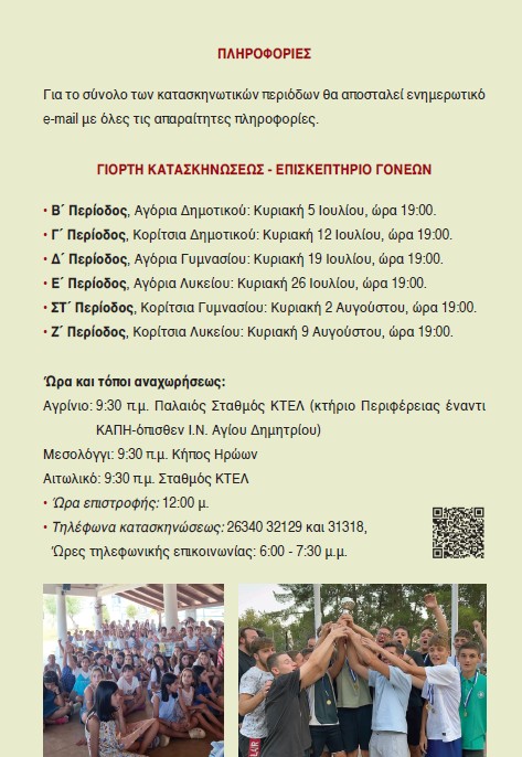 Οι Κατασκηνωτικές Περίοδοι για το καλοκαίρι του 2026 είναι οι εξής: