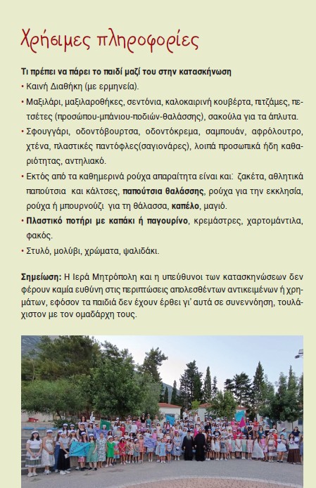 Καλοκαίρι 2026 – Πρόγραμμα λειτουργίας των κατασκηνώσεων της Ι.Μ. Αιτωλίας και Ακαρνανίας
