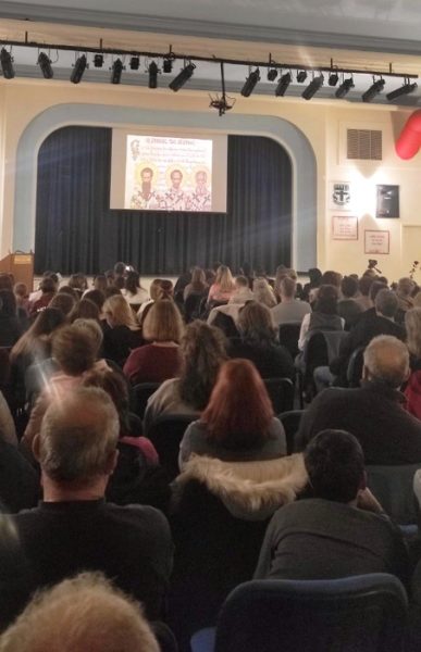 Το θέατρο της φιλόξενης Ελληνογαλλικής Σχολής Ουρσουλινών χώρεσε την αγάπη και τον παλμό του κόσμου. Μια κυριολεκτική «λαοθάλασσα» από παιδιά όλων των ηλικιών και τους γονείς τους κατέκλυσε κάθε γωνιά της αίθουσας, στέλνοντας ένα ηχηρό μήνυμα ζωντάνιας και ελπίδας σε εποχές που τα Κατηχητικά Σχολεία δοκιμάζονται.