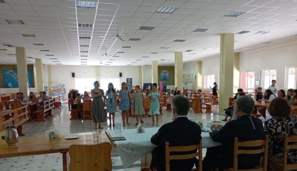 Αμέσως μετά το γεύμα, ακολούθησε η εορτή λήξης, την οποία ετοίμασαν τα παιδιά και παρουσίασαν θεατρικό δρώμενο αφιερωμένο στη Μικρασιατική Καταστροφή και έκλεισαν με παράσταση θεάτρου σκιών.