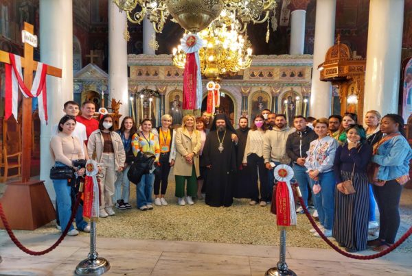 Ομάδα μαθητών από την Ρουμανία, την Ουγγαρία και την Κύπρο, με επικεφαλής την κα Ξανθή Αλμπανάκη, Πρόεδρο των Θεολόγων Κομοτηνής και την Διευθύντρια του Γενικού Λυκείου Ιάσμου κα Βάγια Σερέτη επισκέφθηκαν, στα πλαίσια του εκπαιδευτικού Προγράμματος Erasmus, τον Ιερό Ναό Αγίου Γεωργίου Κομοτηνής την Παρασκευή, 29 Απριλίου 2022