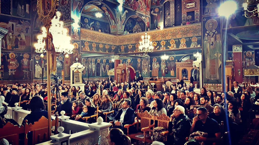 03/12/2019 03/12/2019 Με την ευλογία του Μακαριωτάτου Αρχιεπισκόπου Αθηνών και πάσης Ελλάδος κ.κ. Ιερωνύμου Β’, πραγματοποιήθηκε στον κατάμεστο Ιερό Ναό Αγίας Σοφίας Νέου Ψυχικού, η παρουσίαση του νέου παιδικού βιβλίου κατηχήσεως του π. Γεωργίου Χριστοδούλου «Μια Χριστουγεννιάτικη κατασκήνωση», των εκδόσεων «Ελληνοεκδοτική». Η πρωτότυπη παρουσίαση άνοιξε την αυλαία της με την βυζαντινή χορωδία του Εργαστηρίου Βυζαντινής Μουσικής της...