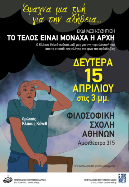 H Χριστιανική Φοιτητική Δράση και η Χριστιανική Φοιτητική Ένωση, μάς προσκαλούν στην εκδήλωση – συζήτηση με τον συγγραφέα Κλάους Κένεθ (Klaus Kenneth) που θα διοργανώσουν τη Δευτέρα 15 Απριλίου 2019, στις 3:00 μ.μ., στη Φιλοσοφική Σχολή του Ε.Κ.Π.Α. (Αμφ. 315).