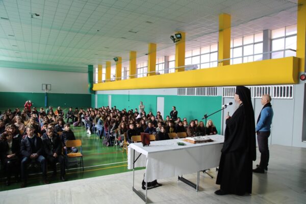 Την Τετάρτη 22 Ιανουαρίου ο Σεβασμιώτατος κ. Ιερόθεος επισκέφθηκε το 2ο Γυμνάσιο Ναυπάκτου, με διευθυντή τον κ. Αντώνιο Μπέκο, και ευλόγησε την βασιλόπιτα στην αίθουσα του Γυμναστηρίο του Σχολείου. Ο Σεβασμιώτατος μίλησε στα παιδιά για την αγάπη και τον έρωτα εστιάζοντας στα γνωρίσματα της αγάπης που είναι η αλήθεια, η ελευθερία, η ανιδιοτέλεια, η προσφορά και η διάρκεια. Και στο Σχολείο αυτό ο Σεβασμιώτατος προσέφερε στον μαθητή που βρήκε το φλουρί ένα βιβλίο του και 50 ευρώ για ευλογία.