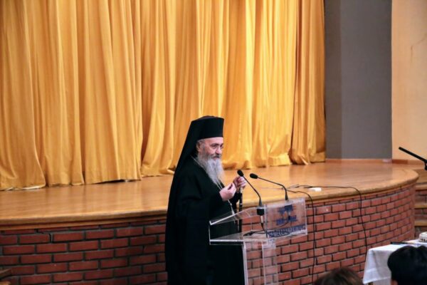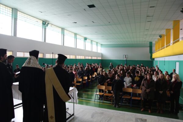 Ο Σεβασμιώτατος μίλησε στους μαθητές του Λυκείου για την ελευθερία και την απελευθέρωσή μας από τον ατομισμό και την φιλαυτία, λέγοντας ότι ο άνθρωπος καλείται να μετατρέψη τους παραμορφωτικούς καθρέπτες οι οποίοι τον περιβάλλουν και τον κλείνουν στον εαυτό τους σε παράθυρα επικοινωνίας με τους άλλους και με τον Θεό. Τέλος προσέφερε δώρο στον μαθητή που βρήκε το φλουρί ένα βιβλίο του και 50 ευρώ για ευλογία. Στην εκδήλωση παραστάθηκε και απηύθυνε χαιρετισμό και ο Δήμαρχος Ναυπακτίας κ. Βασίλειος Γκίζας.