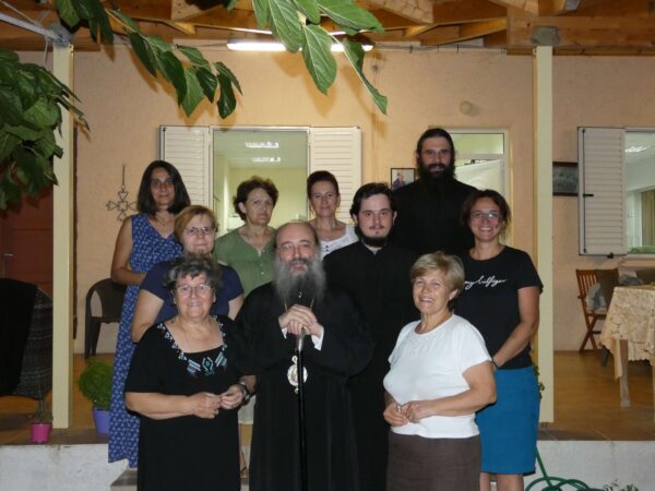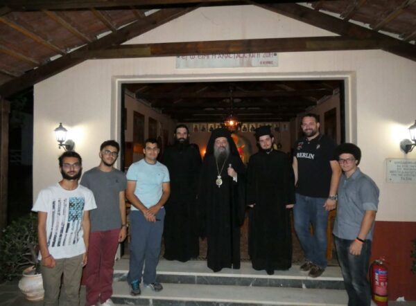 Τόν Σεβασμιώτατο ὑποδέχθηκαν μαζί μέ τούς κατασκηνωτές, ὁ Ἀρχηγός τῆς κατασκηνωτικῆς περιόδου Διάκονος Σεραφείμ Στολάκης, τά στελέχη τῆς κατασκήνωσης, οἱ ἐθελόντριες μαγείρισσες καθώς καί τό ὑπόλοιπο βοηθητικό προσωπικό.