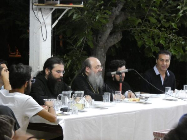 Ὁ Σεβασμιώτατος παρεκάθησε σέ γεῦμα πού παρετέθη καί ὡμίλησε στά παιδιά, δίδοντάς τους συμβουλές γιά τήν πνευματική πορεία καί ζωή.