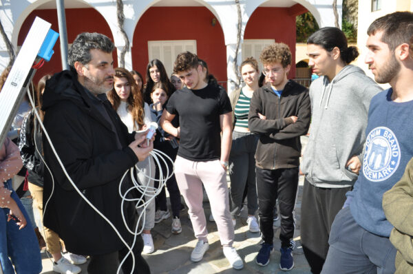 Ο επιστημονικός συνεργάτης και Υπεύθυνος του Ινστιτούτου Θεολογίας και Οικολογίας, Παραρτήματος της ΟΑΚ, Αντώνης Καλογεράκης, συζήτησε με τους μαθητές για τα θέματα των ΑΠΕ και τους έδειξε στην πράξη, τον τρόπο λειτουργίας ένα φωτοβολταϊκού πάνελ με μπαταρία, μέσω του οποίου παράγεται ηλεκτρική ενέργεια, χωρίς να εκπέμπονται τοπικά ρύποι.