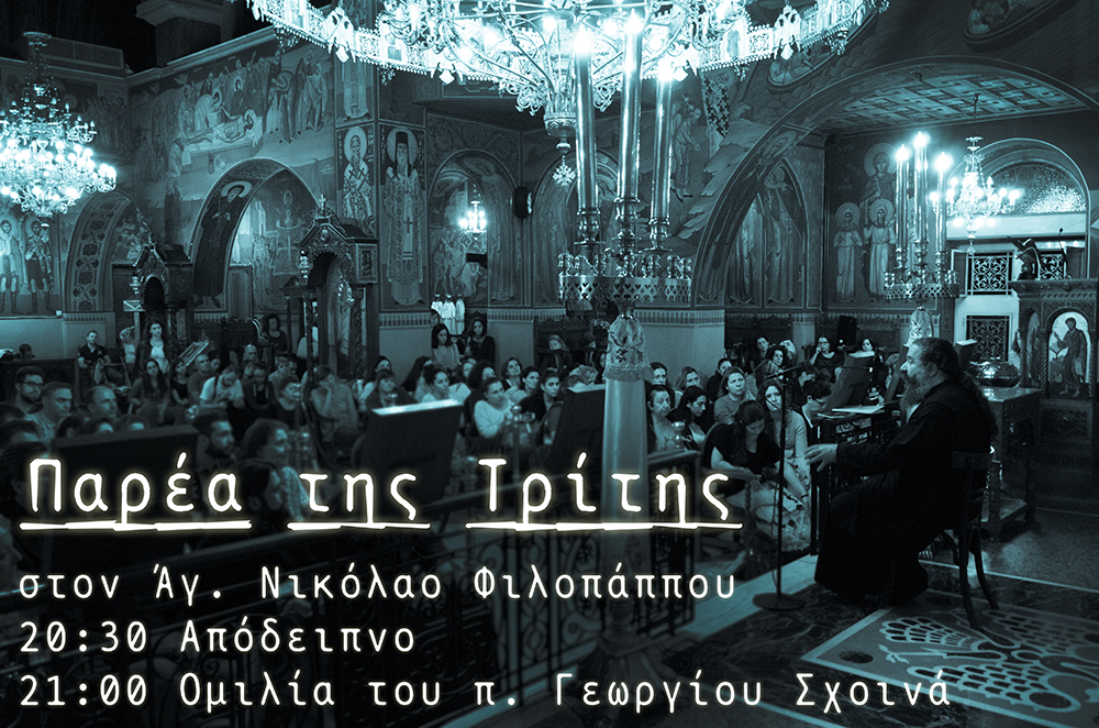 «Ζώντας Ορθόδοξα μέσα στην Κοινωνία» – Ομιλία του π. Γεωργίου Σχοινά στον Άγιο Νικόλαο Φιλοπάππου στη νεανική “Παρέα της Τρίτης” στις 2 Ιουλίου 2019.