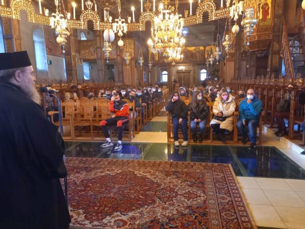 15/03/2022 06/04/2022 Με πρωτοβουλία τους οι μαθητές της Β’ τάξεως του Γενικού Λυκείου Αρναίας επισκέφθηκαν σήμερα Τρίτη 15 Μαρτίου ε.έ. τον πάνσεπτο Ιερό Μητροπολιτικό Ναό του Αγίου Στεφάνου, ακολουθούμενοι από τους Καθηγητές και τις Καθηγήτριές τους και συνομίλησαν με τον Σεβασμιώτατο Μητροπολίτη Ιερισσού, Αγίου Όρους και Αρδαμερίου κ. Θεόκλητο. Προηγήθηκε ενημέρωση των επισκεπτών από τον π. Γεώργιο...
