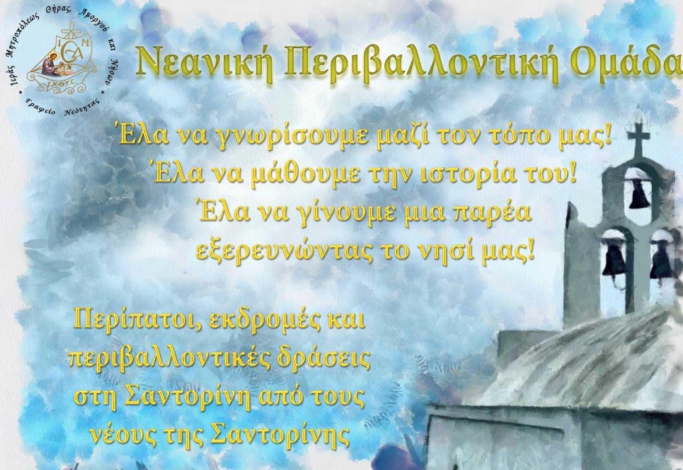 Εκδρομές, περίπατοι και περιβαλλοντικές δράσεις θα πραγματοποιήσει η Ιερά Μητρόπολη Θήρας, έτσι ώστε οι νέοι να έχουν την ευκαιρία να γνωρίσουν τον τόπο και την ιστορία του.
