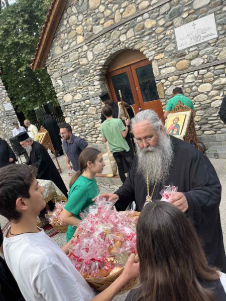 Ο Σεβασμιώτατος καλωσόρισε όλα τα παιδιά που κατέφθασαν από πολλές περιοχές του νομού Πιερίας, μαζί με τους συνοδούς τους ιερείς, και κατηχητές. Τους συνεχάρη που όλο τον χρόνο ήταν συνεπείς στις εβδομαδιαίες συνάξεις, τονίζοντας την αξία της διδασκαλίας του Ευαγγελίου στην πορεία της ζωής τους. Ευχήθηκε μάλιστα σε όλους καλή επιτυχία στις σχολικές και λοιπές εξετάσεις που διενεργούνται αυτό το διάστημα, ενώ μοίρασε σε όλους πασχαλινά τσουρέκια και αυγά.
