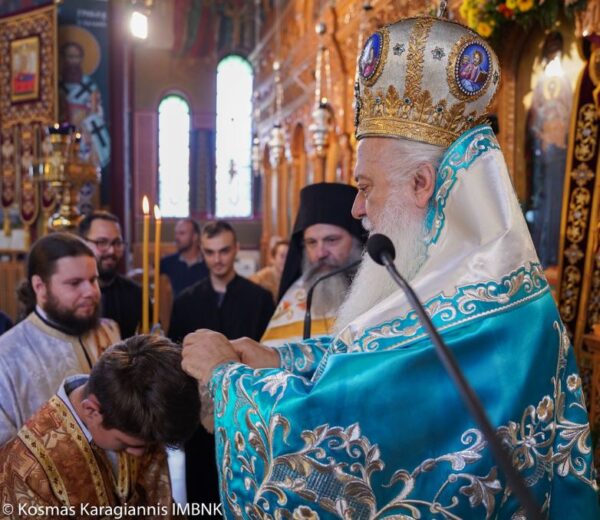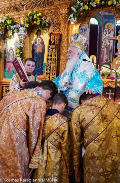 Στο τέλος, ο Σεβασμιώτατος χειροθέτησε σε Αναγνώστες τέσσερις ιερόπαιδες της ενορίας που διακονούν το ιερό Βήμα, τους Παναγιώτη Λαμπρόπουλο, Παπαδόπουλο Γεώργιο, Αθανασιάδη Κωνσταντίνο και Πετρόπουλου Αλέξανδρο.